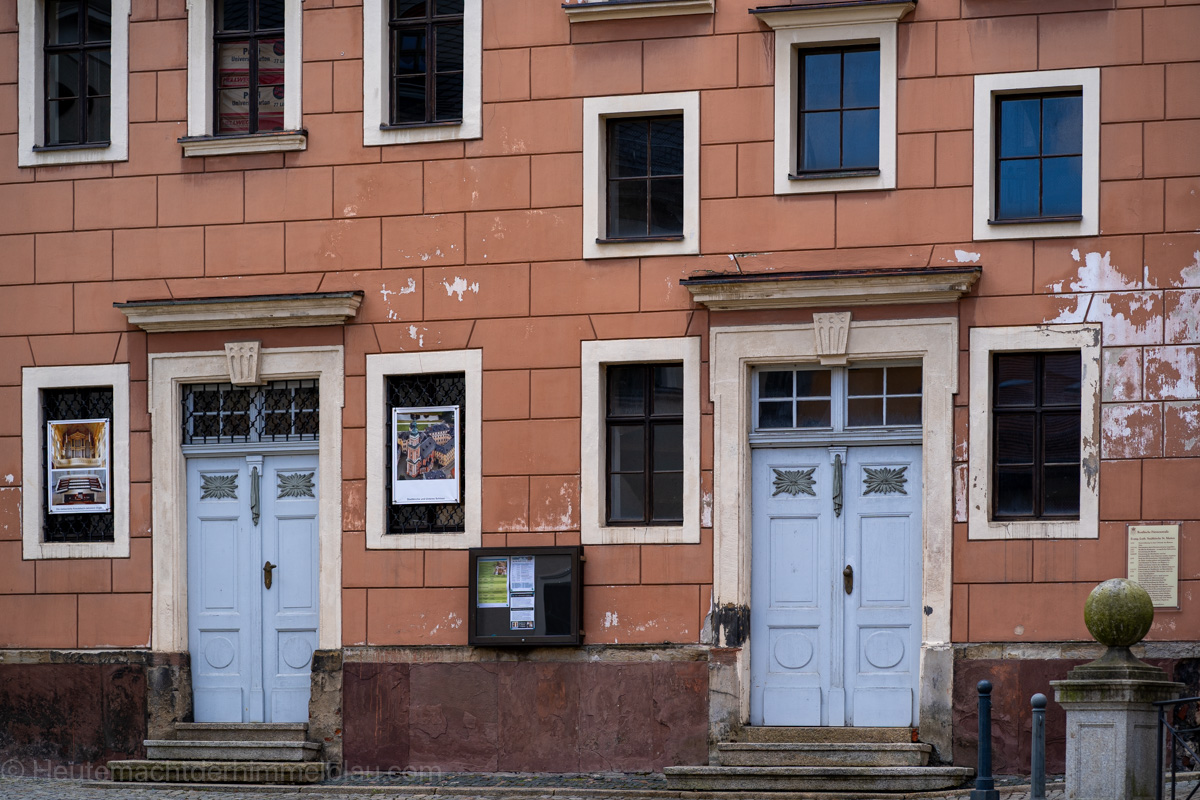 Die evangelische Stadtkirche St. Marien wurde 1225 das erste Mal urkundlich erwähnt. Sie wurde nach dem Stadtbrand von 1802, der auch eine der größeren Silbermann-Orgeln mit zerstörte, im klassizistischen Stil wiederaufgebaut. Leider war auch diese Stadtkirche bei unserem Besuch geschlossen.