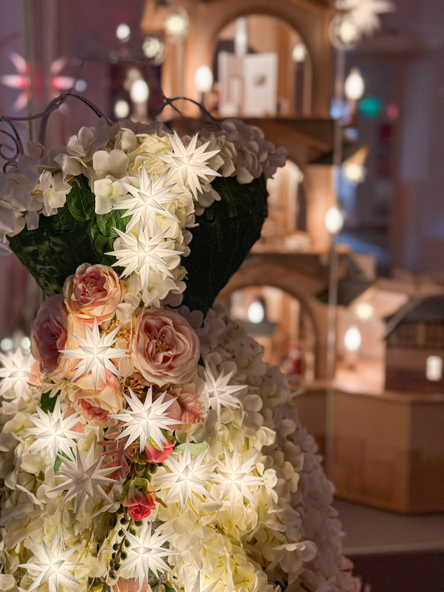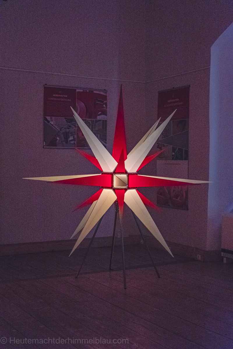 Der Hauptgrund, warum wir uns nach Schloss Rochsburg aufgemacht hatten, war die Sonderausstellung „Herrnhuter Sterne“, die noch bis 29.12.2024 besichtigt werden kann.* Sie ist im Preis des Museumsbesuches inbegriffen. Für unschlagbare 5 Euro pro erwachsene Person (ermäßigt 3 Euro) kann man treppauf und treppab auf Entdeckungsreise durch das Schloss gehen.